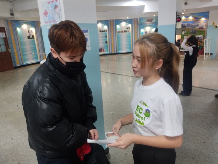 2021 жылдың 14 қазанында мектебіміздің 5-7 сыныптарынан құрылған ECO patrol тобы бастауыш 1-4 сыныптарын аралап қоқыстарды бөліп салу және оның сұрыпталуы қағидаларын түсіндірді. Жас табиғат жанашырлары оқушыларға мектеп дәлізінде орналасқан қоқыстарды бөліп салу жәшіктері туралы айтып,тұрмыстық қалдықтарға екінші өмір сыйлаудың маңыздылығын айтып өтті. Сондай-ақ қайта сұрыпталуға жататын және сұрыпталуға жатпайтын қоқыс қалдықтары туралы баяндады. Осындай іс-шаралар біздің қаланы әдемі, жайлы және таза етеді.