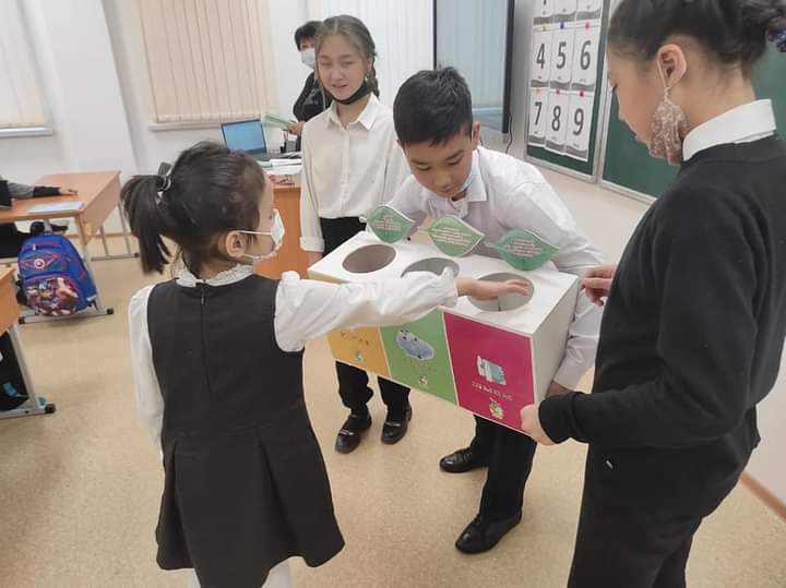 Әлкей Марғұлан атындағы №40 мектеп-лицей оқушылары қанатты достарымызға арнап тұрмыстық қалдықтарды пайдалана отырып, құстарға жемсалғыш ұяшығын жасады.