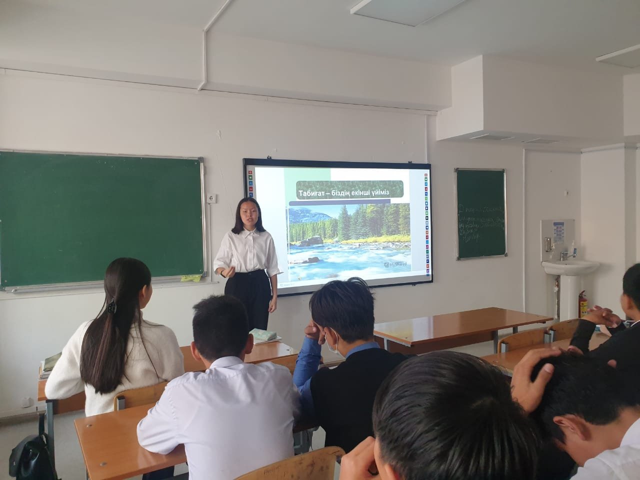 2022 жылдың сәуір-мамыр айларында оқушылардың экологиялық мәдениетін көтеру, қоршаған ортасын сүйюге қамқорлықпен қарауға баулу мақсатында мектебімізде «Мен және табиғат» атты сынып сағаттары өткізілді.