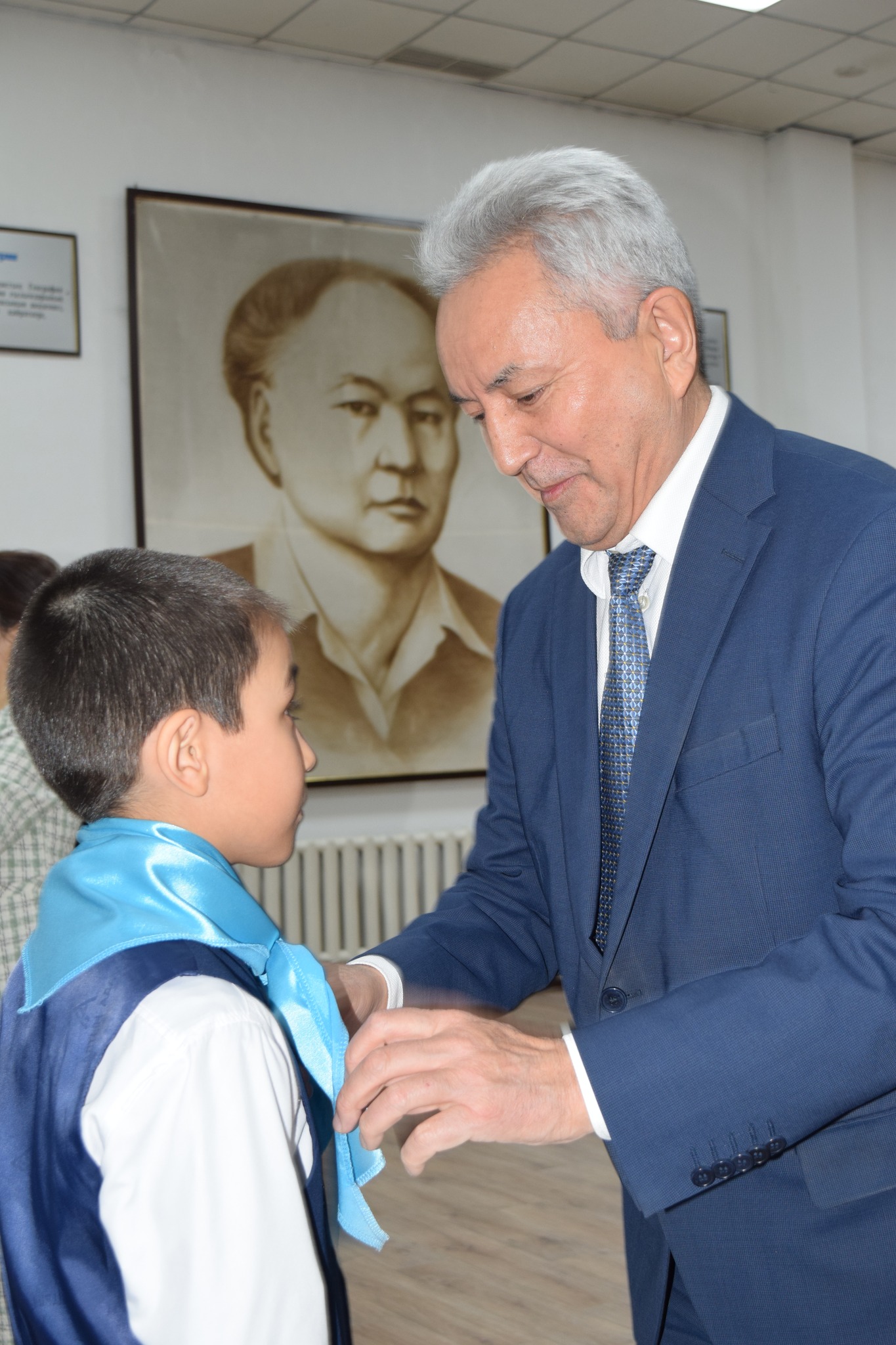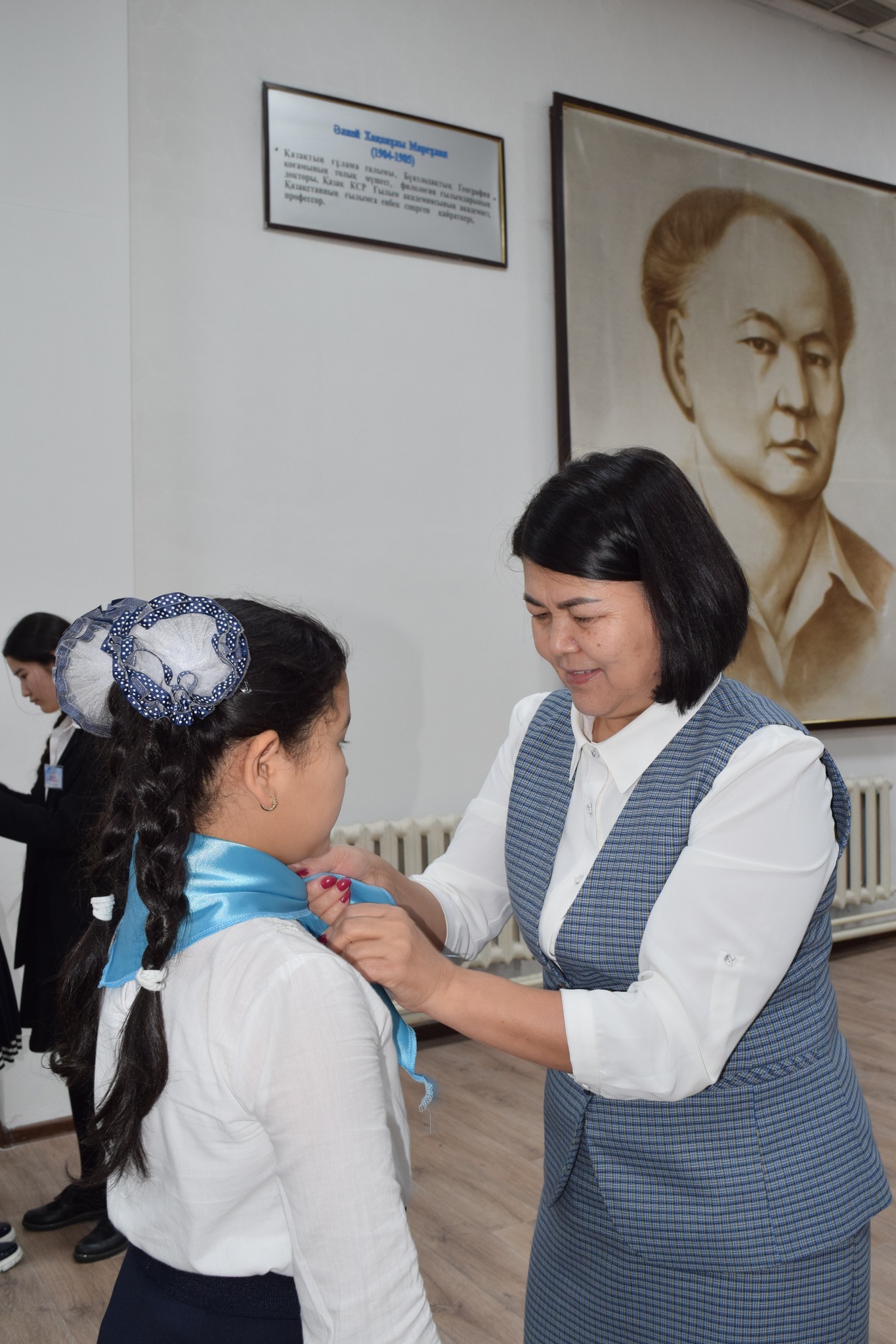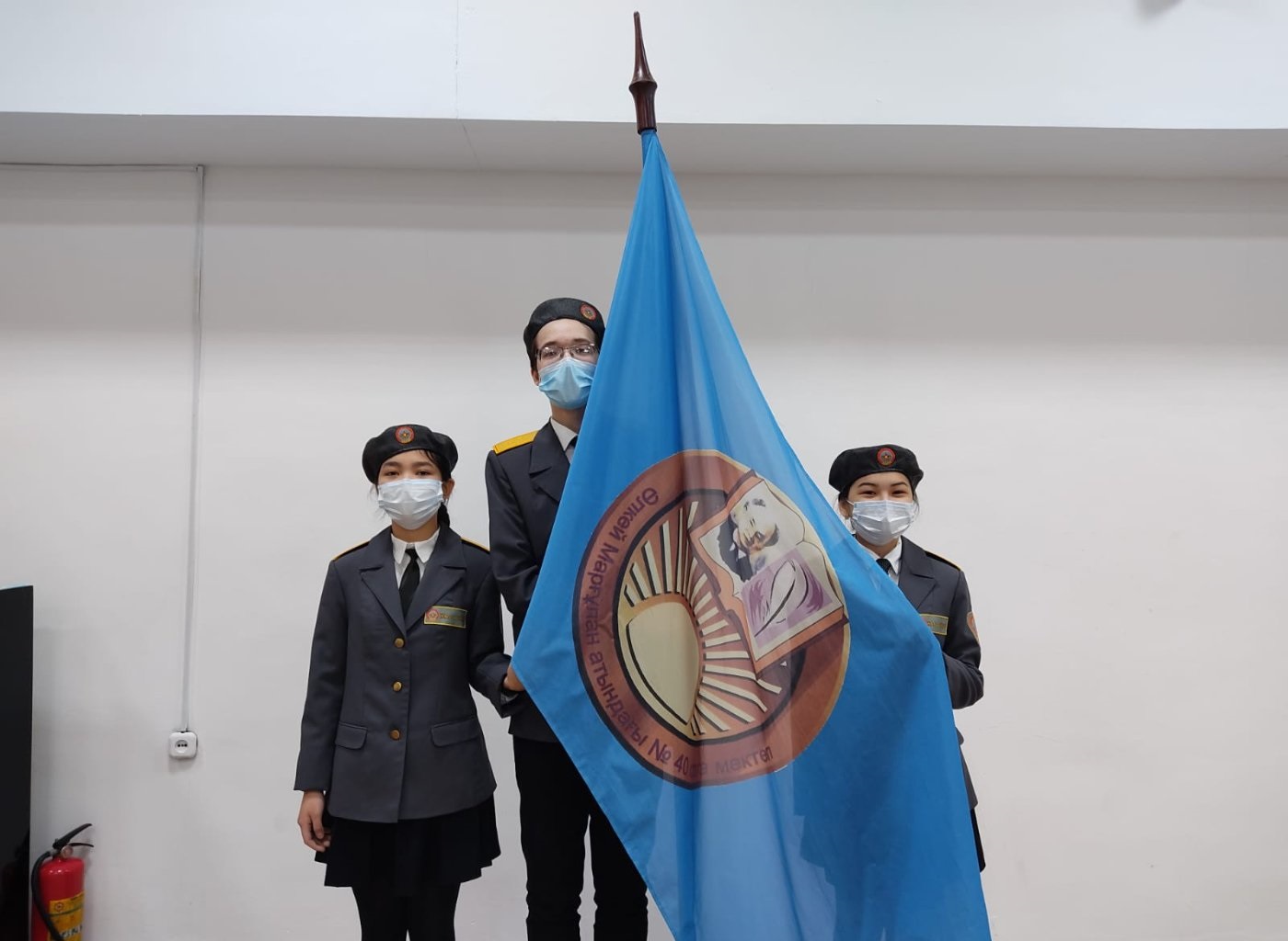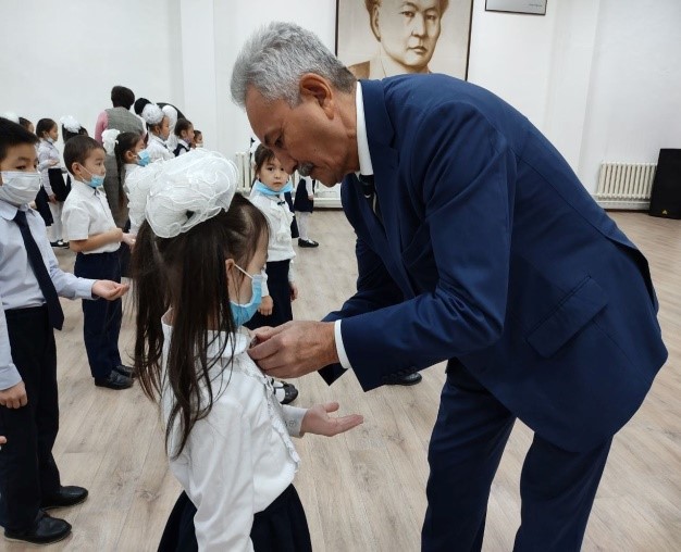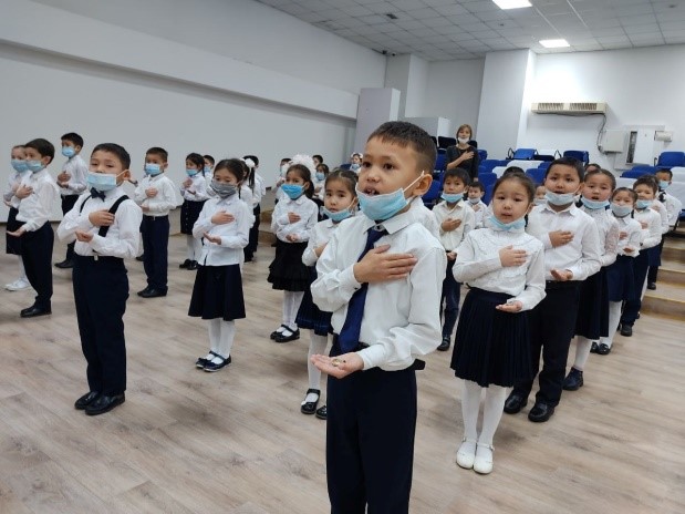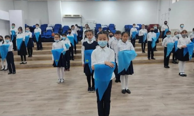 Құттықтап сөз алған мектеп директоры және директордың тәрбие жұмысы жөніндегі орынбасарлары оқушыларға көк туымызды қалай қастерлеп, оны жоғары көтерсек, дәл солай мойындағы көк галстуктерін де қадірлеп ұстауға, мектептің, еліміздің абыройын көтеретін үлкен азамат болып, үлгілі оқушы болуларына сенім артып жылы лебіздерін білдірді. Жиын Әлкей Марғұлан маршымен аяқталды.