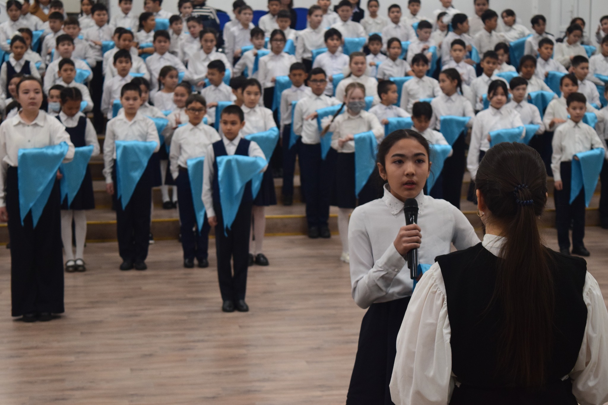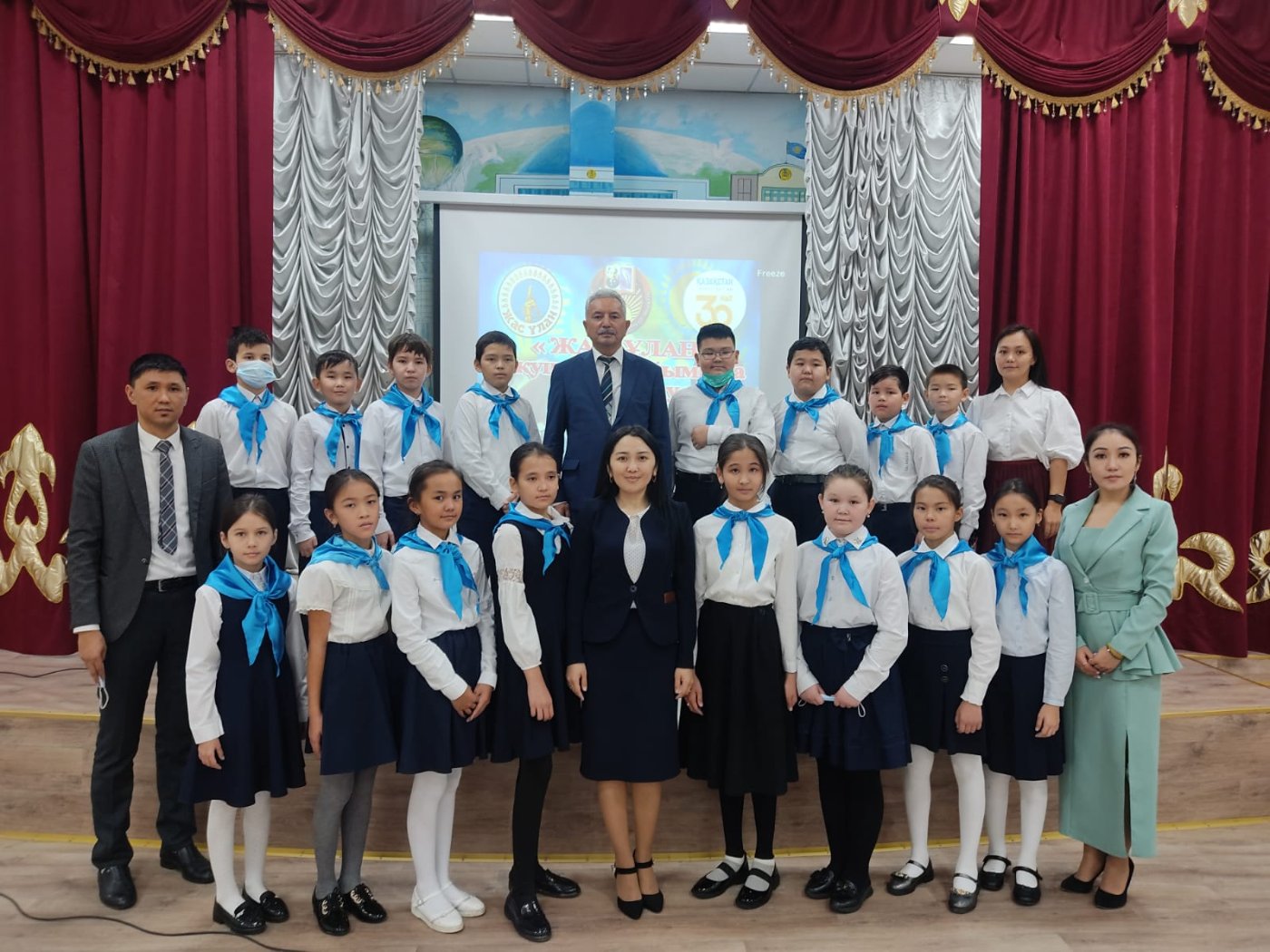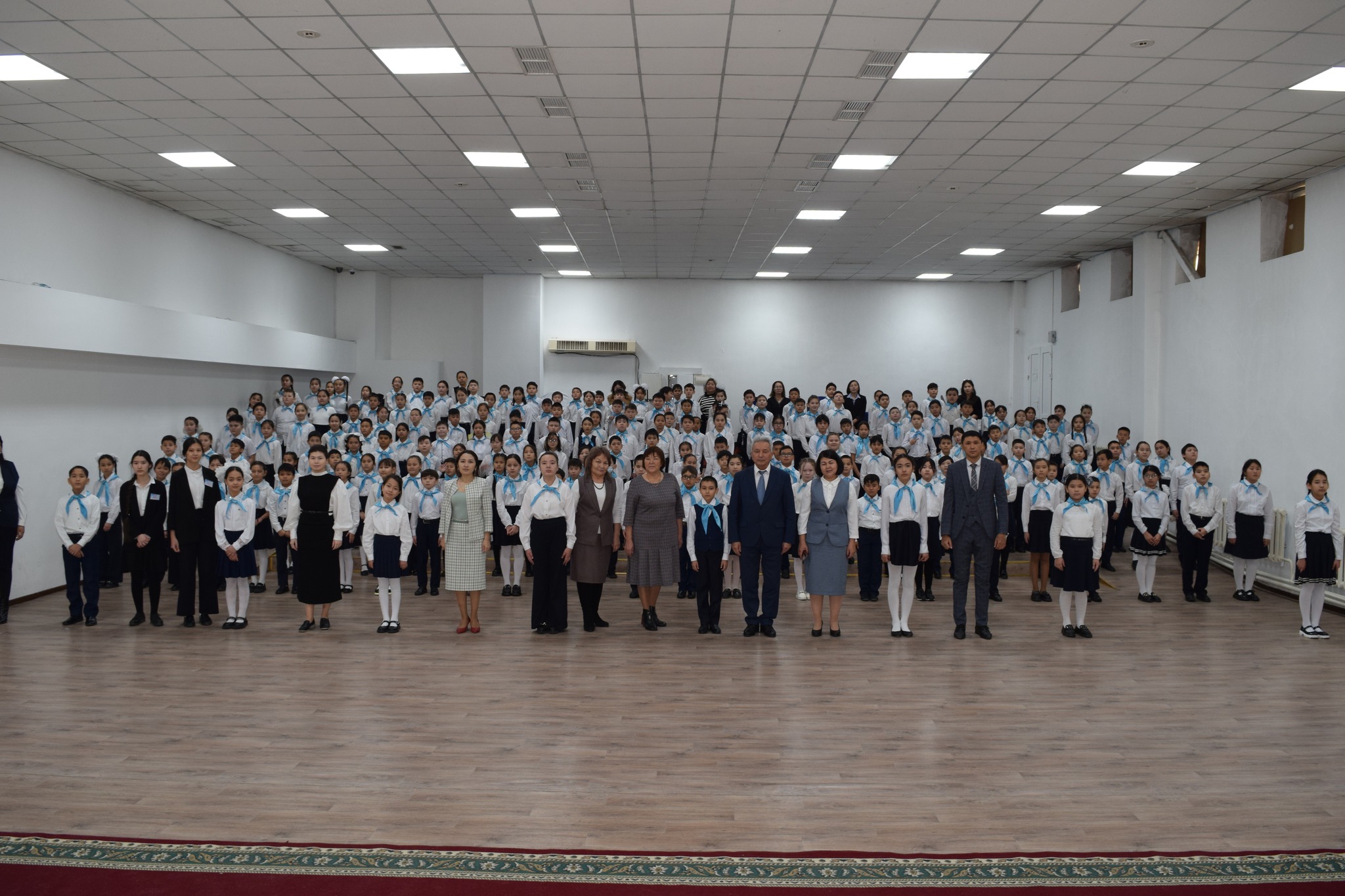 Салтанатты жиында 5 «А» сыныбы – Ыбырай Алтынсарин атындағы топ, 5 «Ә» сыныбы – Исатай Тайманұлы атындағы топ, 5 «Б» сыныбы – Қажымұқан Мұңайтпасұлы атындағы топ, 5 «В» сыныбы – Іргебай Ербол Ісләмұлы атындағы топ, 5 «Г» сыныбы – Хамит Ерғали атындағы топ, 5 «Д» сыныбы – Жамбыл Жабайұлы атындағы топ, 5 "З" сыныбы – Қасым Аманжолов атындағы топ, 5 "Е" сыныбы – Әлихан Бөкейхан атындағы топ, 5 "И" сыныбы – Серке Қожамқұлов атындағы топ оқушылары өз дайындықтары туралы мәлімет беріп, ант қабылдады. Салтанатты жиында галстук тағу мәртебесі мектеп директоры Базыл Жанкелді Сағынтайұлына, директордың тәрбие жұмысы жөніндегі орынбасарлары Жұлдыз Балғабайқызы мен Қайрат Сиражиденұлына, директордың оқу-ісі жөніндегі орынбасарлары Нұргүл Хаздайқызы, Жұмагүл Балтабайқызы және «Жасұлан» оқушылар ұйымы 11 сынып оқушыларына берілді.