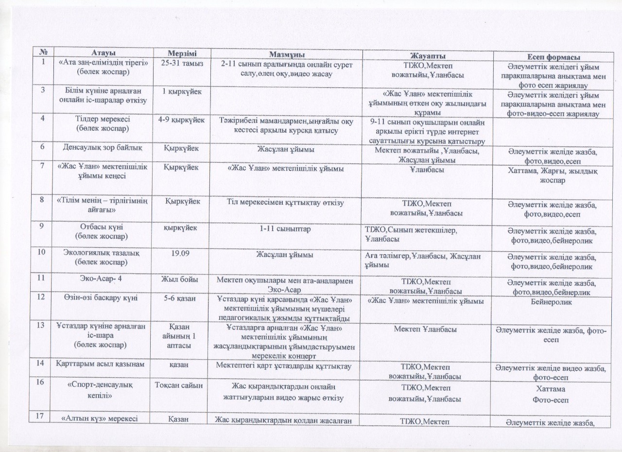 Еліміздегі пандемия шектеулеріне байланысты «Жасұлан» оқушылар ұйымына қабылдану екі сыныптан бөлініп, сағат 10:00-де, 11:00-де, 12:00-де және де 13:00-де өткізілді.