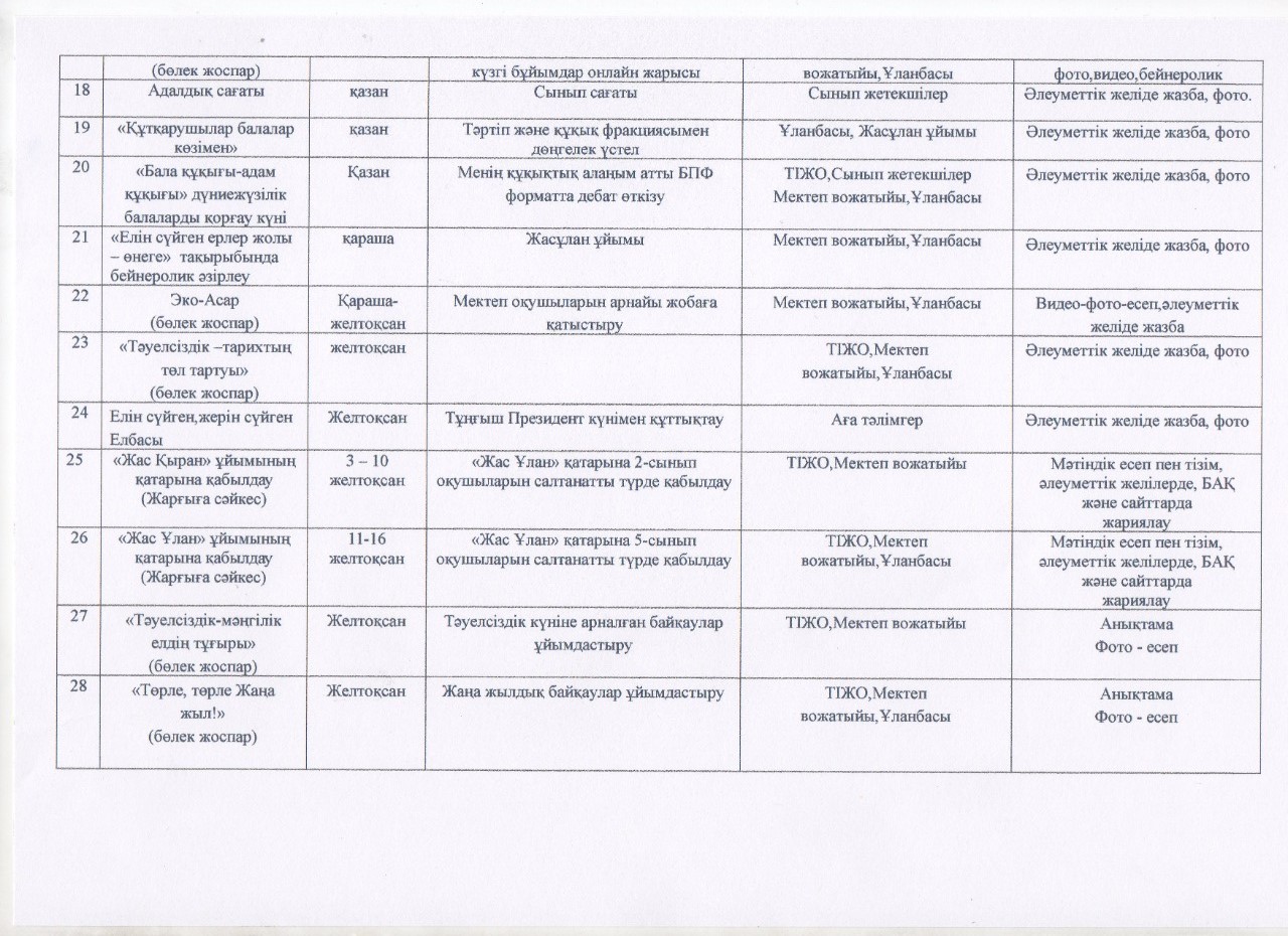 • Мектепшілік іс-шараларды оқушылардың жетістігі мен мектеп жаңалықтарын БАҚ-та жариялау;