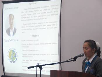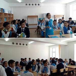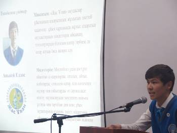 «Мектеп – жеткіншек ұрпақтың ойын қалыптастыратын шеберхана». 2015-2016 оқу жылындағы «Жас Ұлан» ұйымының Ұланбасына үміткер Келесбай Райхан, Жаңбырбай Алмас, Анькей Елдос сайлау алды бағдармаларын ұсынып, ашық түрде дауысқа салынды. Нәтижесінде айқын басымдықпен 10-сынып оқушысы Анькей Елдос ұйымның Ұланбасысы атанды.