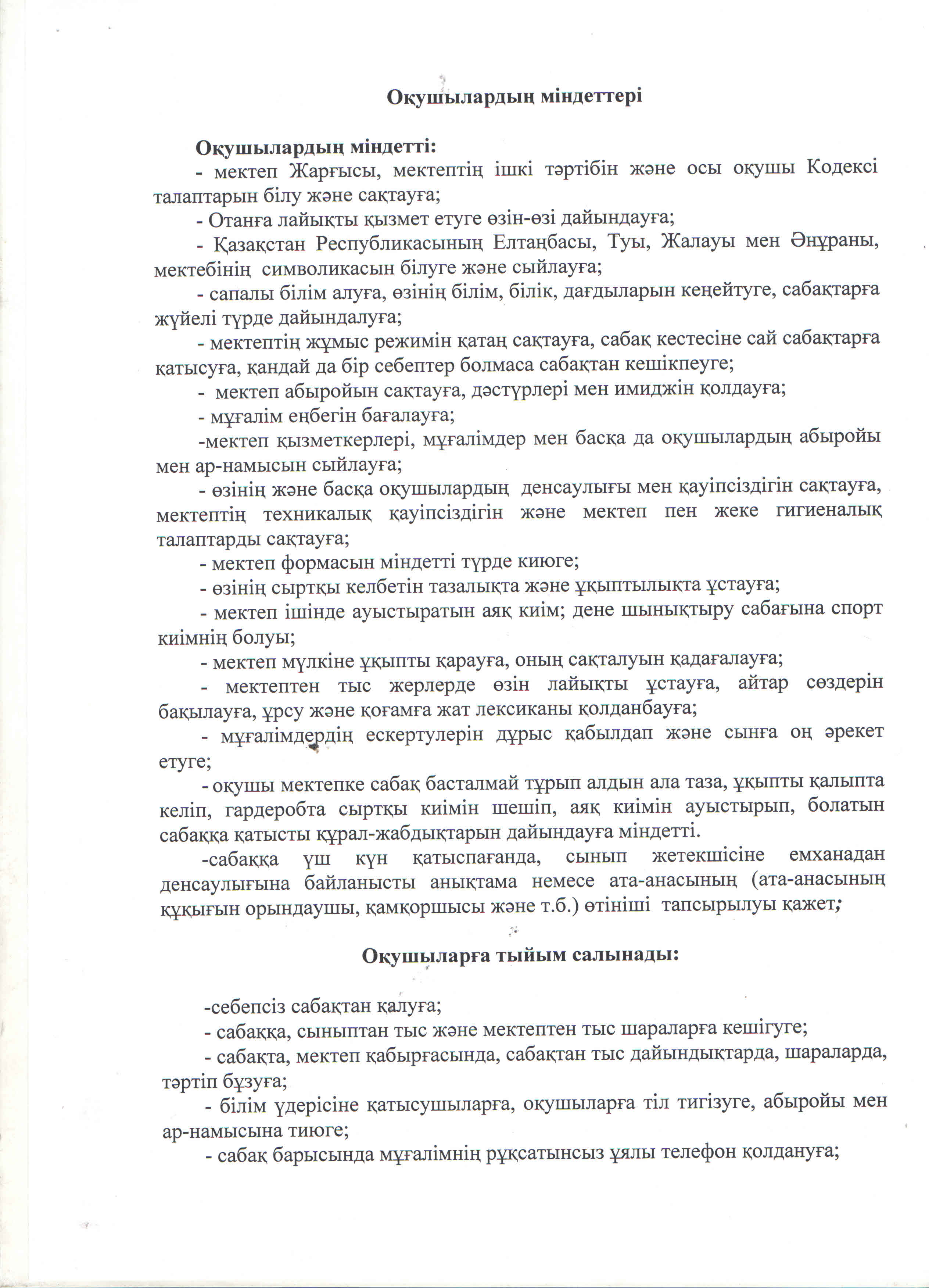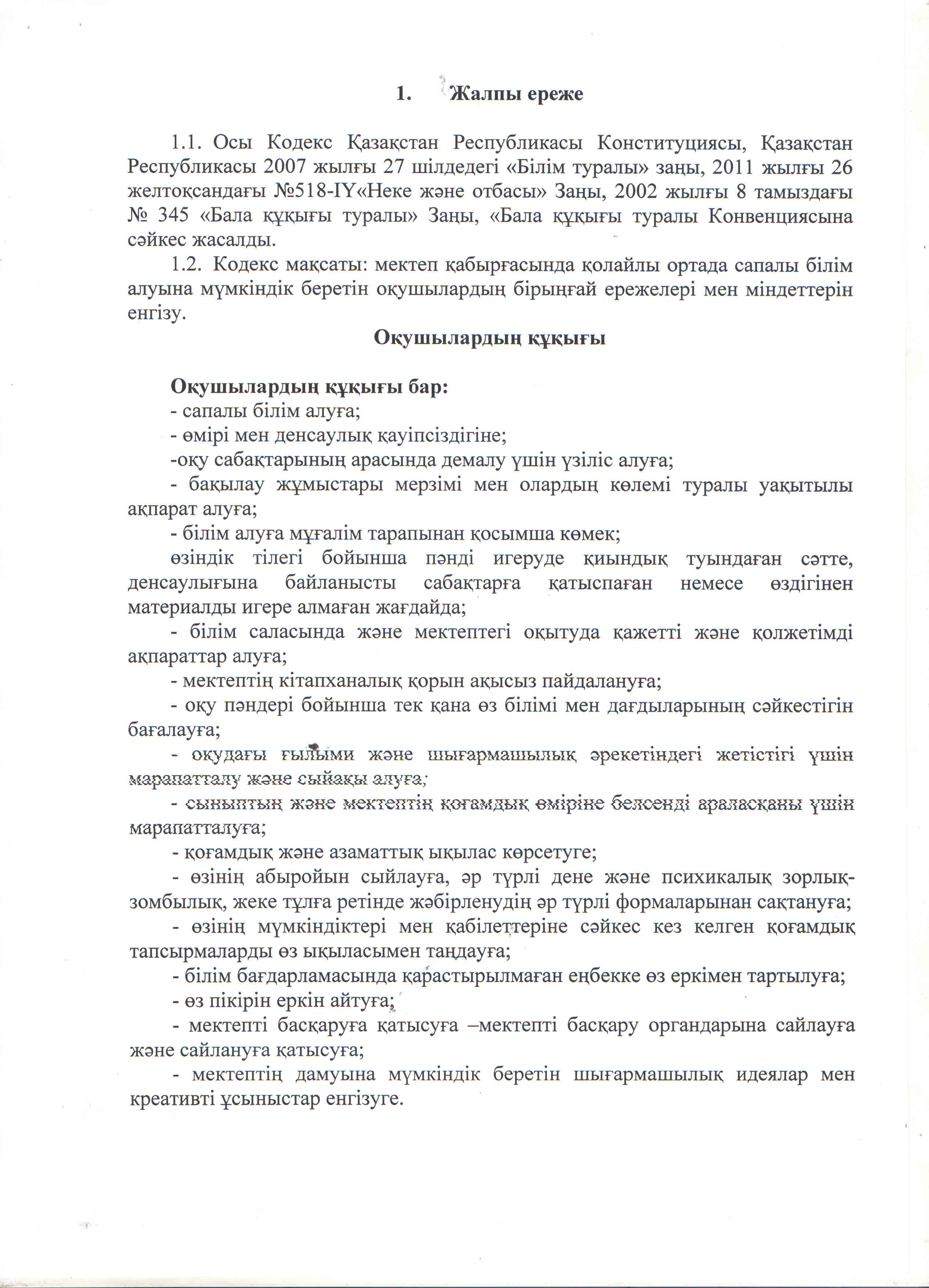 • Оқушылардың ұлтына, тіліне, әлеуметтік жағдайына қарамастан тең құқығын қорғау;