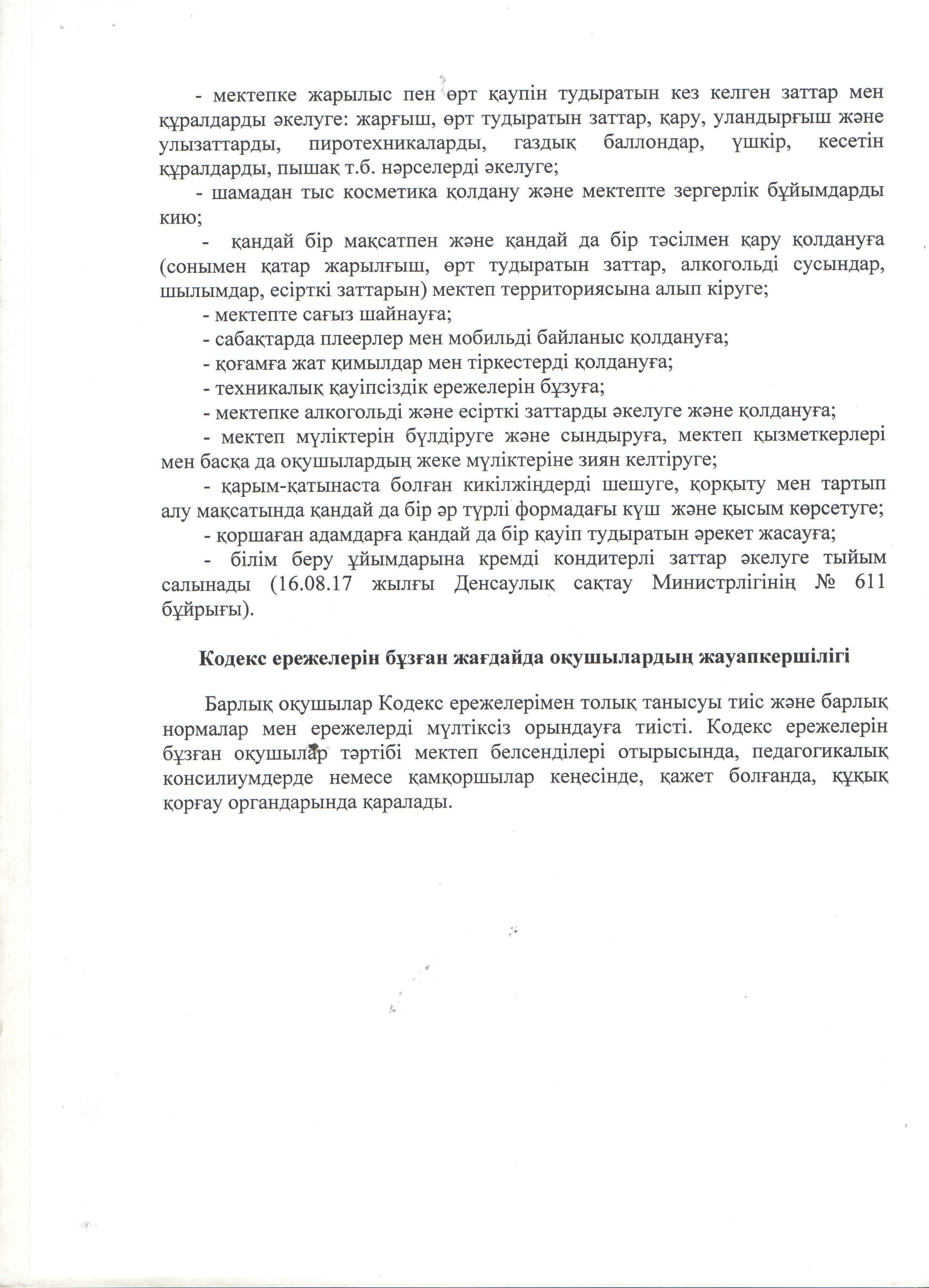 - Мектепішілік ар-намыс кодексін, ережелердің орындалуын қадағалау;