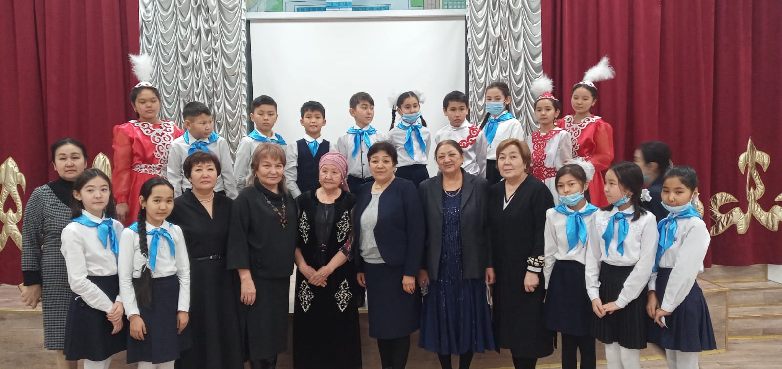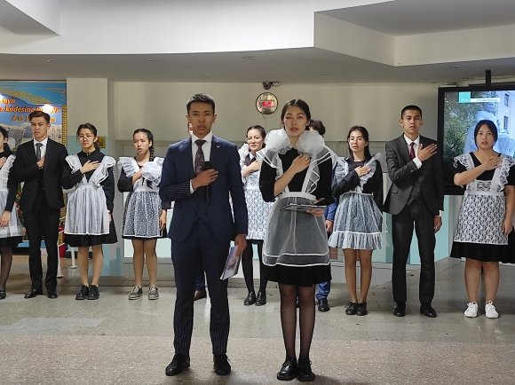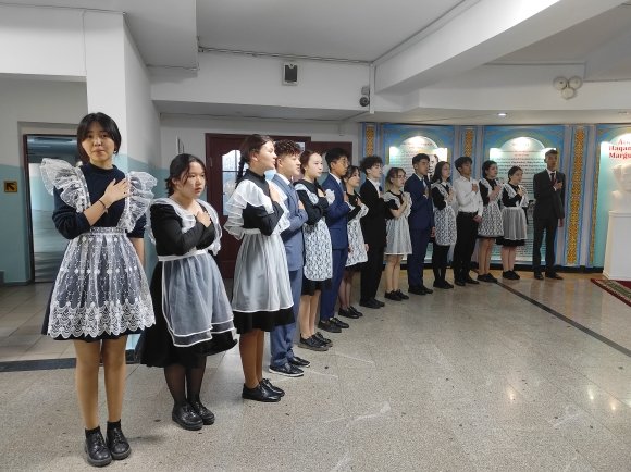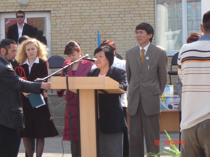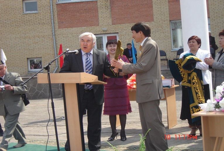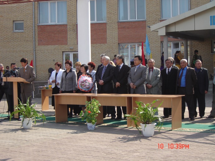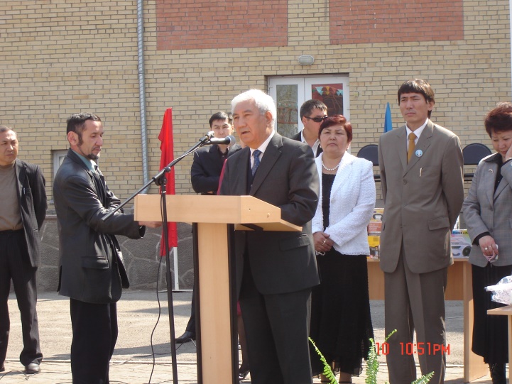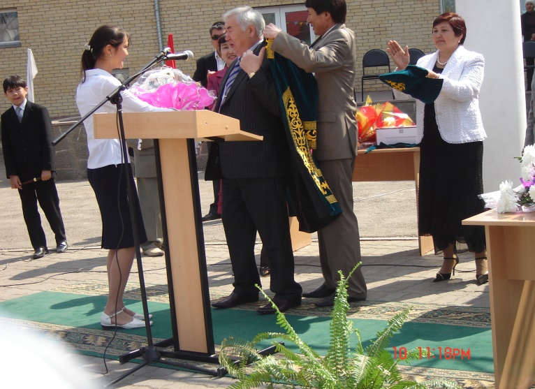Суретте: (солдан оңға қарай) Астана қаласы Білім басқармасы бастығы Әсима Бимендина, Дәнел Әлкейқызы,  сәулетші Серік Рүстембеков, шәкірттері Рымғали Нұрғалиұлы, жазушы Бақытжан Тобаяқов, Білім және ғылым министрлігінің өкілі  Ж.Жүкенов